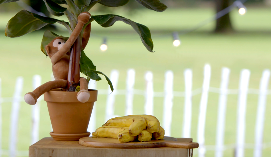 - Kleur de bananen een beetje bij met bruin kleurpoeder.