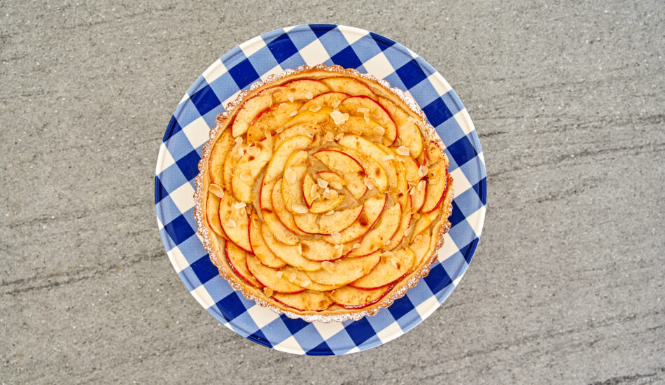 Met een prachtige appelbloem is deze vlaai niet alleen een lust voor het oog, het smaakt ook nog eens heel erg lekker!