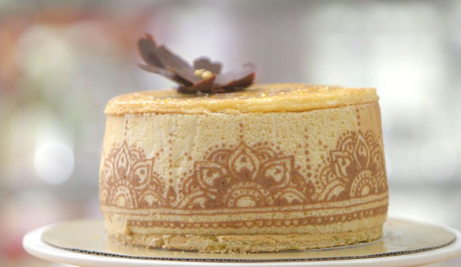 - Spuit het decoratiebeslag op bakpapier stroken in een hennapatroon voor de buitenrand van de taart, hou rekening met de hoogte en omtrek van de taart.