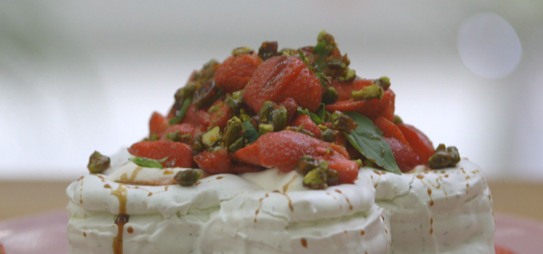 - Strooi de overgebleven pistachenoten over de bovenkant.