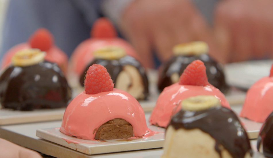 Samenstellen chocolade-framboosdomes