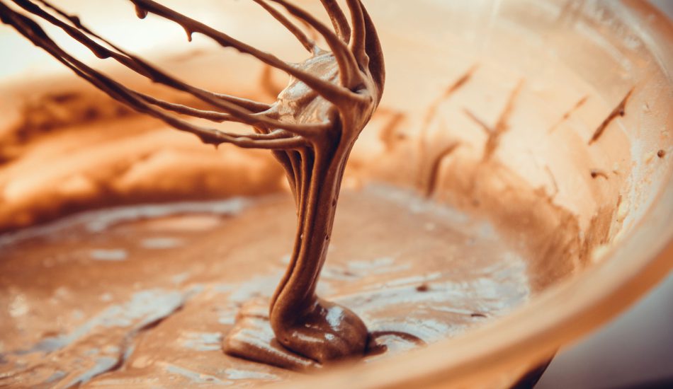 - Spatel dit door de eieren en suiker tot er een homogeen beslag ontstaat.
