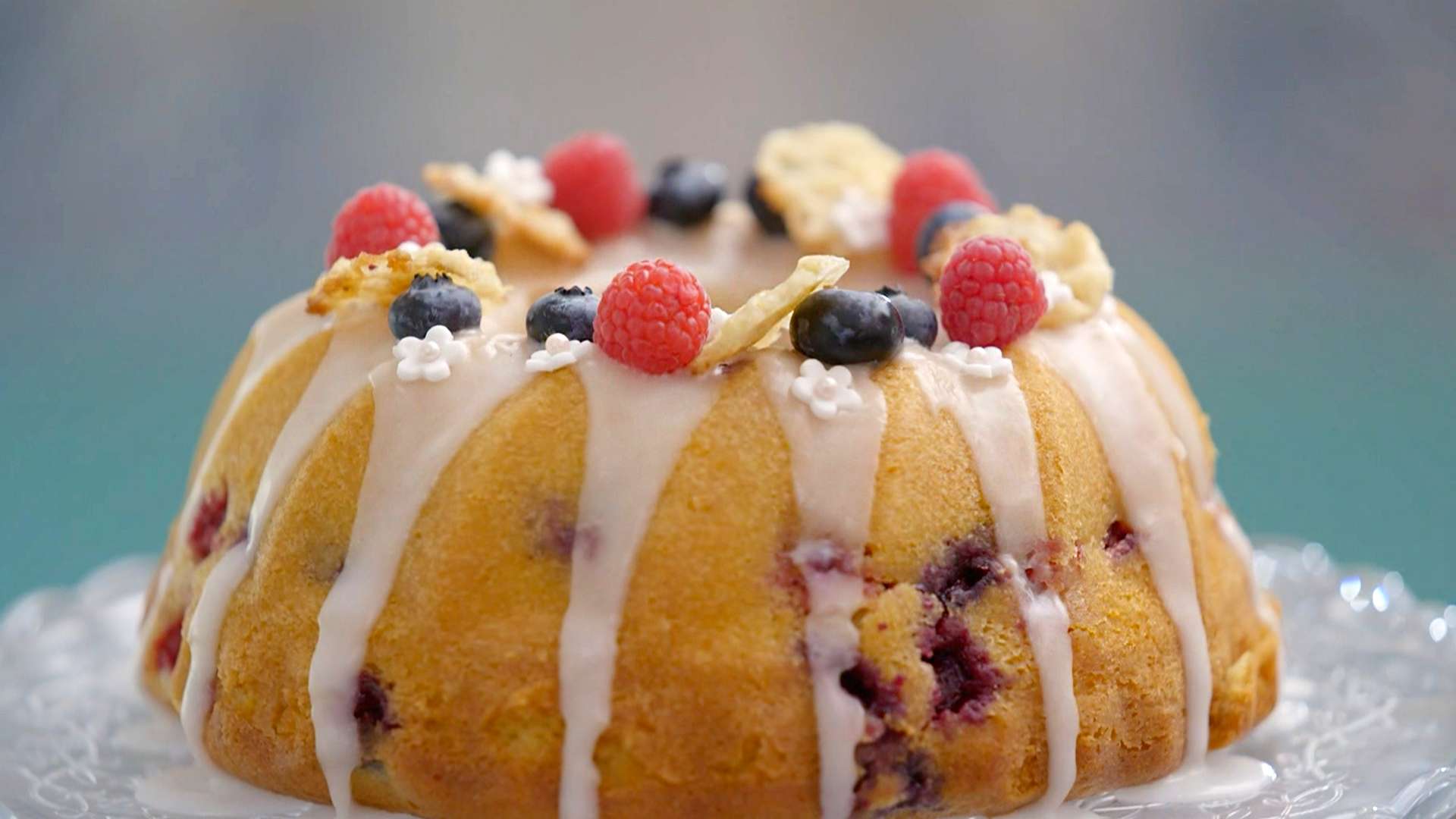 - Plaats de tulband in het midden van de oven en bak de cake in ongeveer 60 – 70 minuten gaar. Test met een sateprikker de gaarheid.