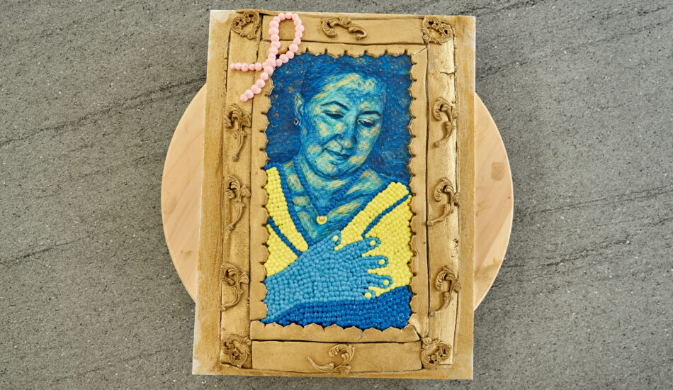 - Schilder een zelfportret op de taart met de botercrème of versier naar eigen inzicht.