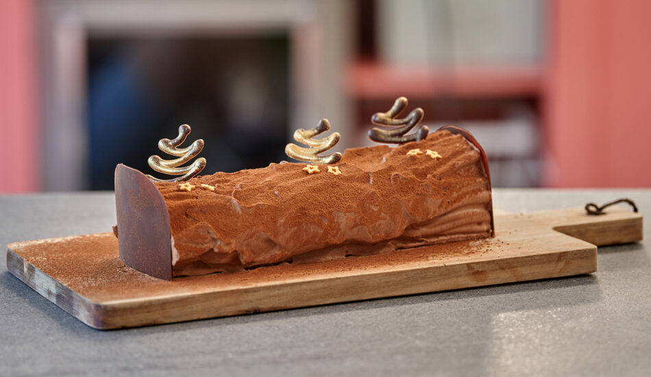 • Haal de bûche uit de vorm en strooi er cacaopoeder overheen.