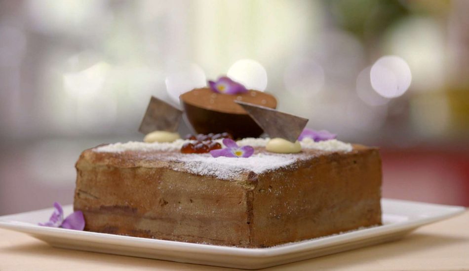 - Leg hier de middelste laag biscuit bovenop en bestrijk die met melkchocolademousse. Dek deze af met de laatste laag biscuit.