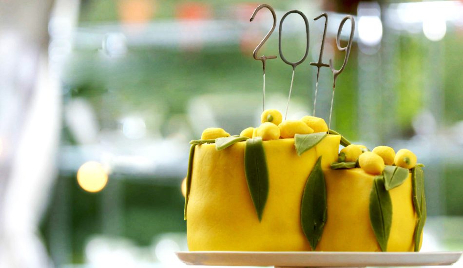 - Smeer de taart af met citroencrème en decoreer met marsepein.