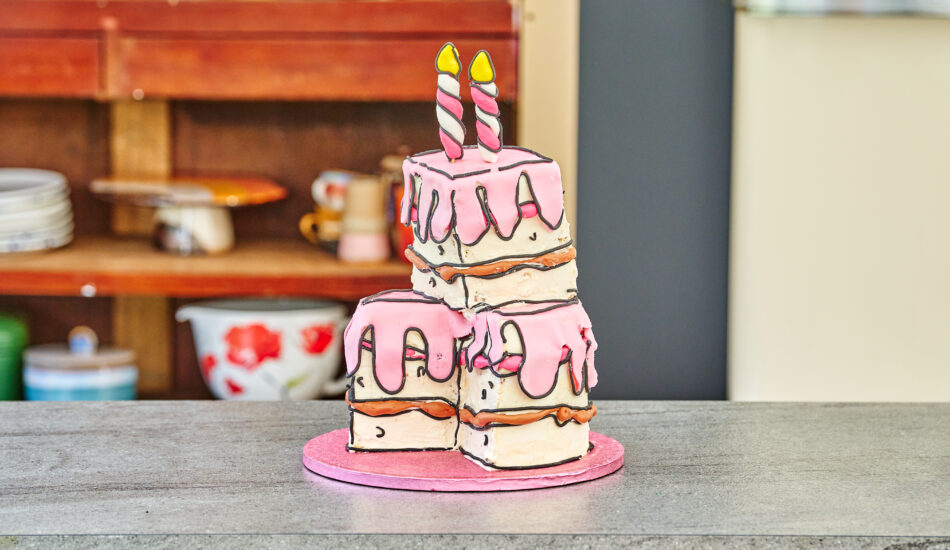 Met deze cartoon cake weet je zeker dat je de jarige verrast! Een plaatje om te zien en heel lekker om op te eten. Volgens Robèrt is “de mix van hazelnoot en amandelen is natuurlijk een geweldige combinatie!”