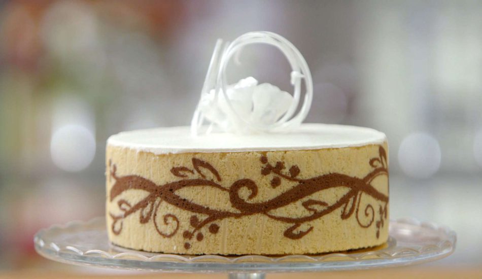 - Doe het geheel in een spuitzak en trek het patroon over op een bakpapiertje, hou daarbij rekening met de omtrek en hoogte van je bakvorm.