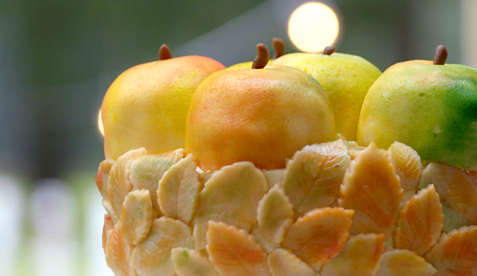- Plaats tot slot de appels bovenop de taart.