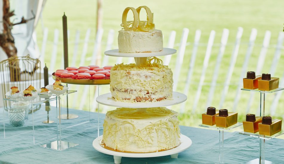 - Plaats elke taart op de taartstandaard.