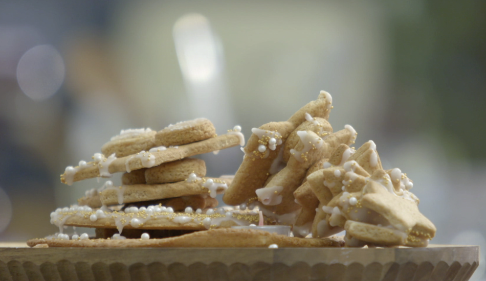 - Pak het gehaakte kleedje en leg deze op je koekjes.