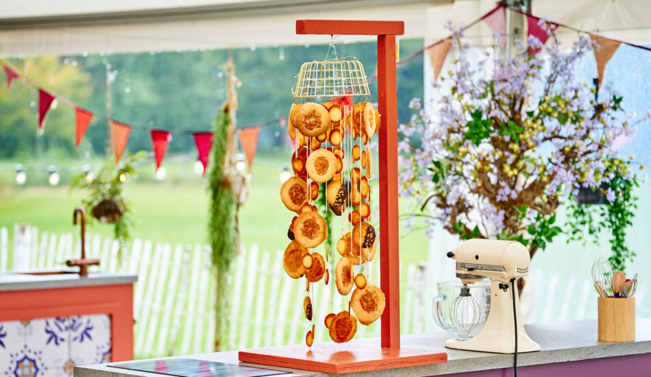Wat deze kroonluchter vol koeken bijzonder maakt? De kattentongen zijn niet langwerpig, maar rond. Kan je extra lang genieten van deze koekjes.