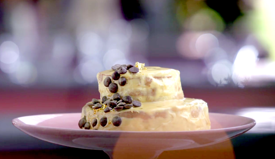 - Besmeer de taart met de crème en strijk helemaal glad.