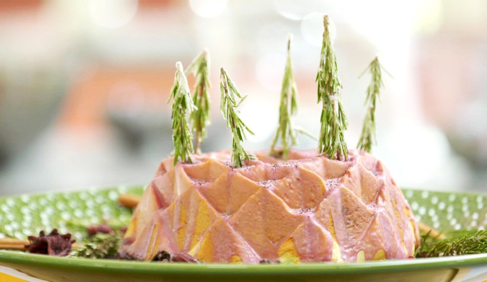 - Smeer de tulband af met glazuur en prik de rozemarijntakjes erin.
