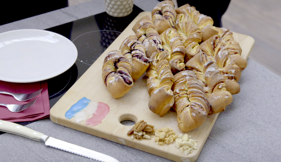 - Strijk met een kwastje het glazuur over de broodjes.