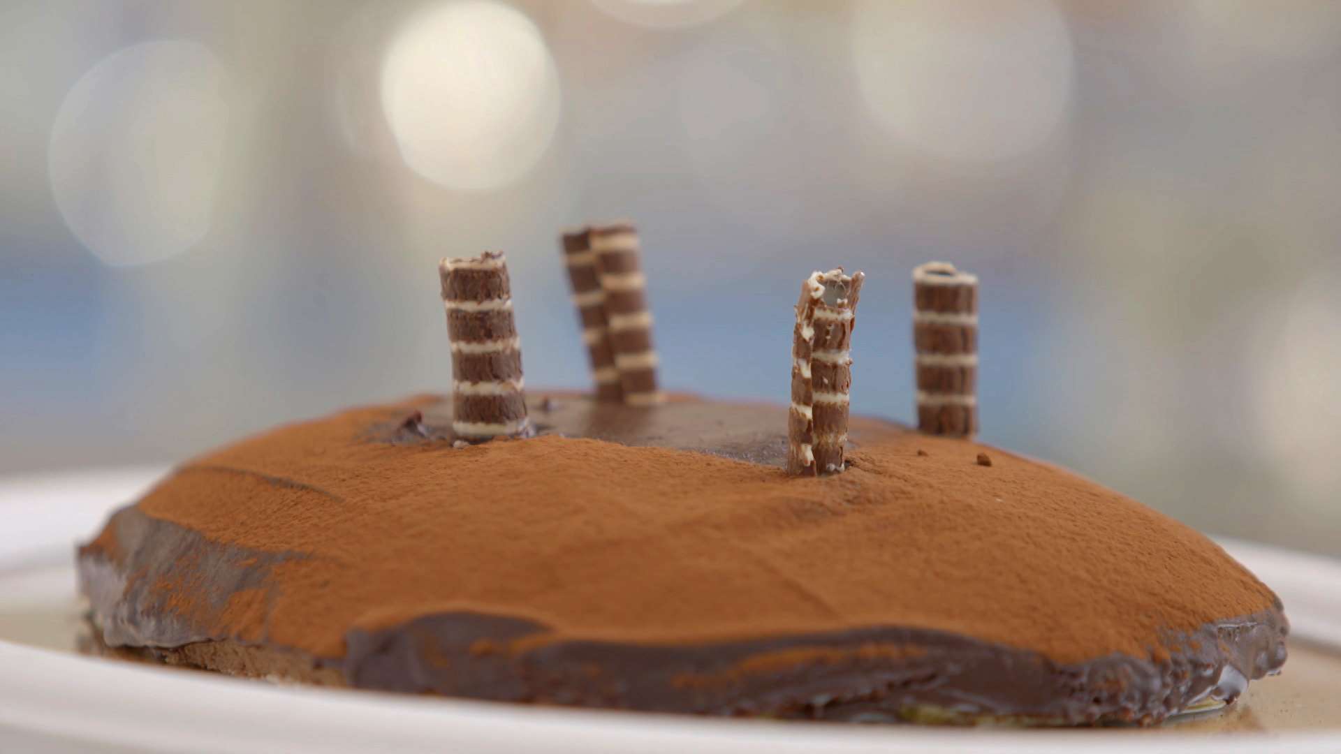- Maskeer de taart zodanig dat deze schuin aan alle kanten naar beneden afloopt.