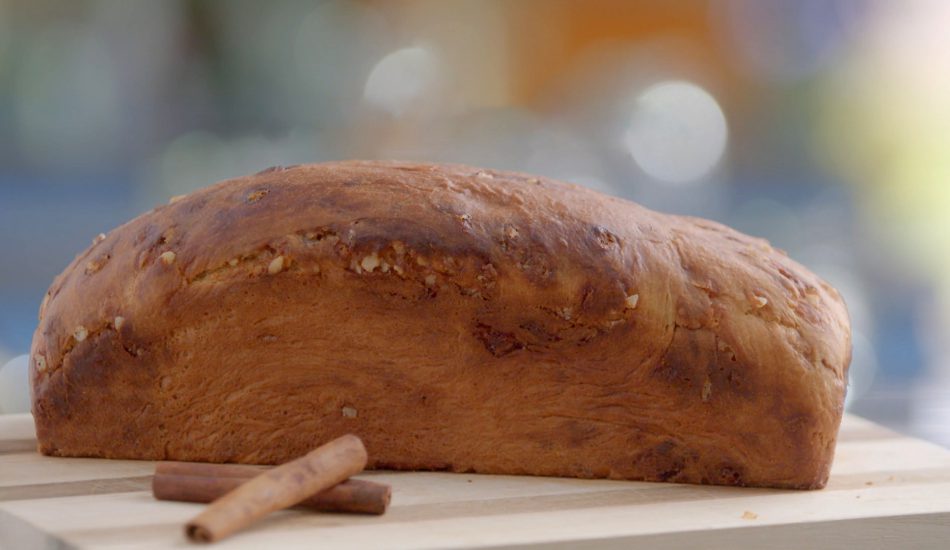 - Leg ter decoratie 2 kaneelstokjes bij het brood neer.