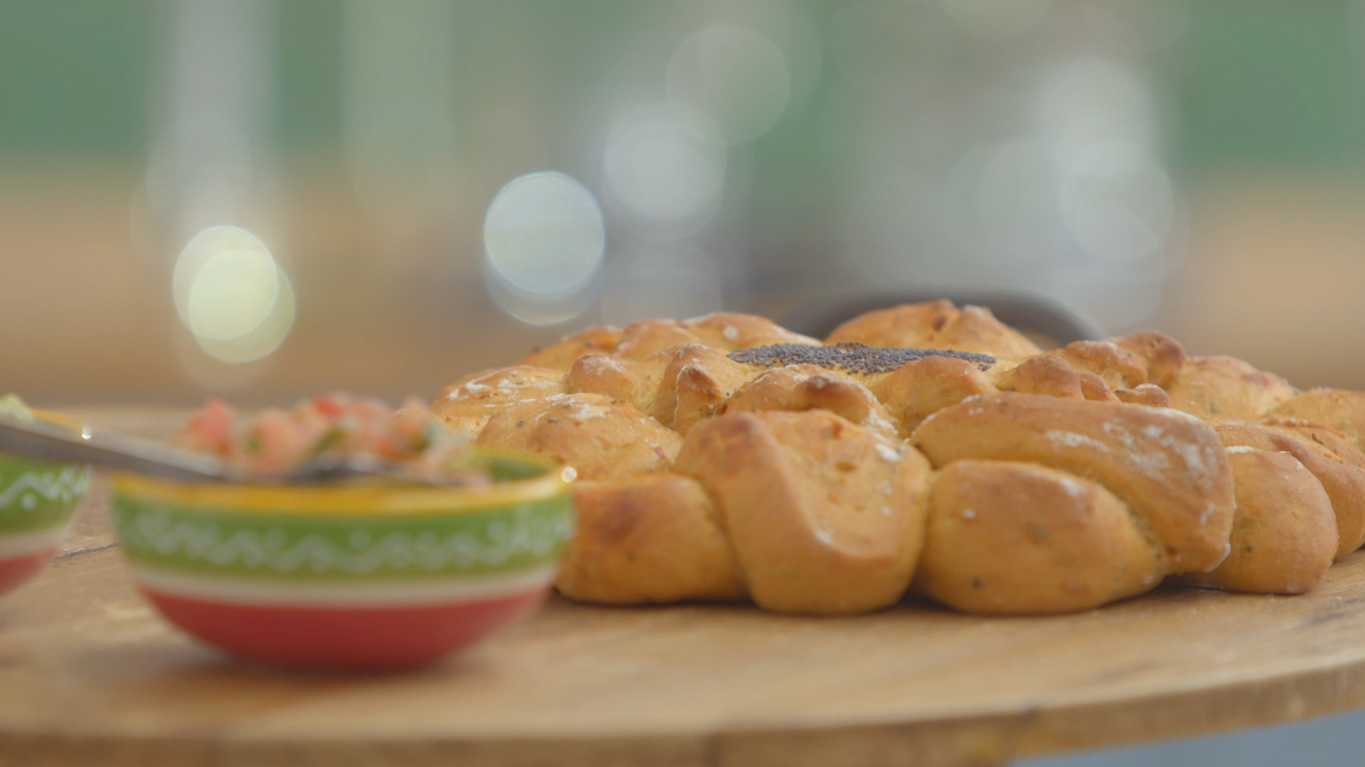 - Bak de brood 10 minuten op 220oC. Verlaag vervolgens de oventemperatuur naar 200°C en bak nog 20 minuten. Verplaats het brood voor de laatste 10 minuten naar een rooster.