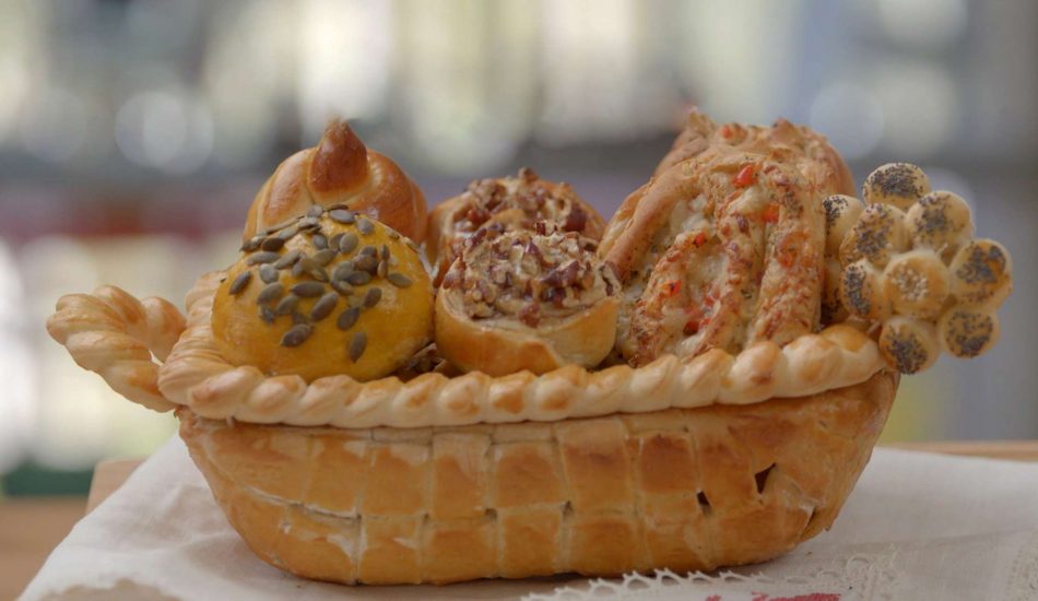 - Bestrijk de mand voor het bakken met losgeklopt ei. Bak de mand in ca. 20 minuten op 200 graden goudbruin. Verwijder de ovenschaal en zet nog 10 minuten terug in de oven.
