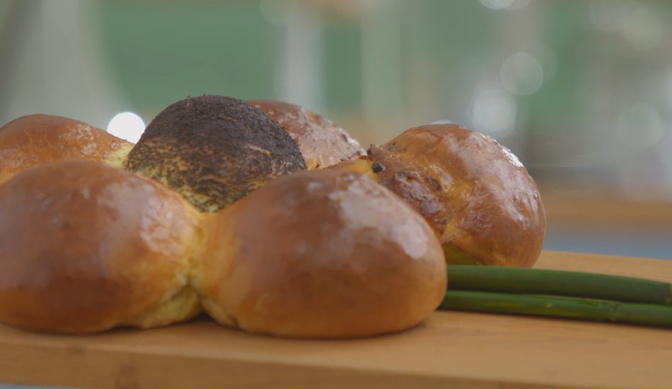 - Schik de bolletjes dicht tegen elkaar op de bakplaat. Leg een bol in het midden en de overige vijf er strak tegenaan in een ‘bloemvorm’.