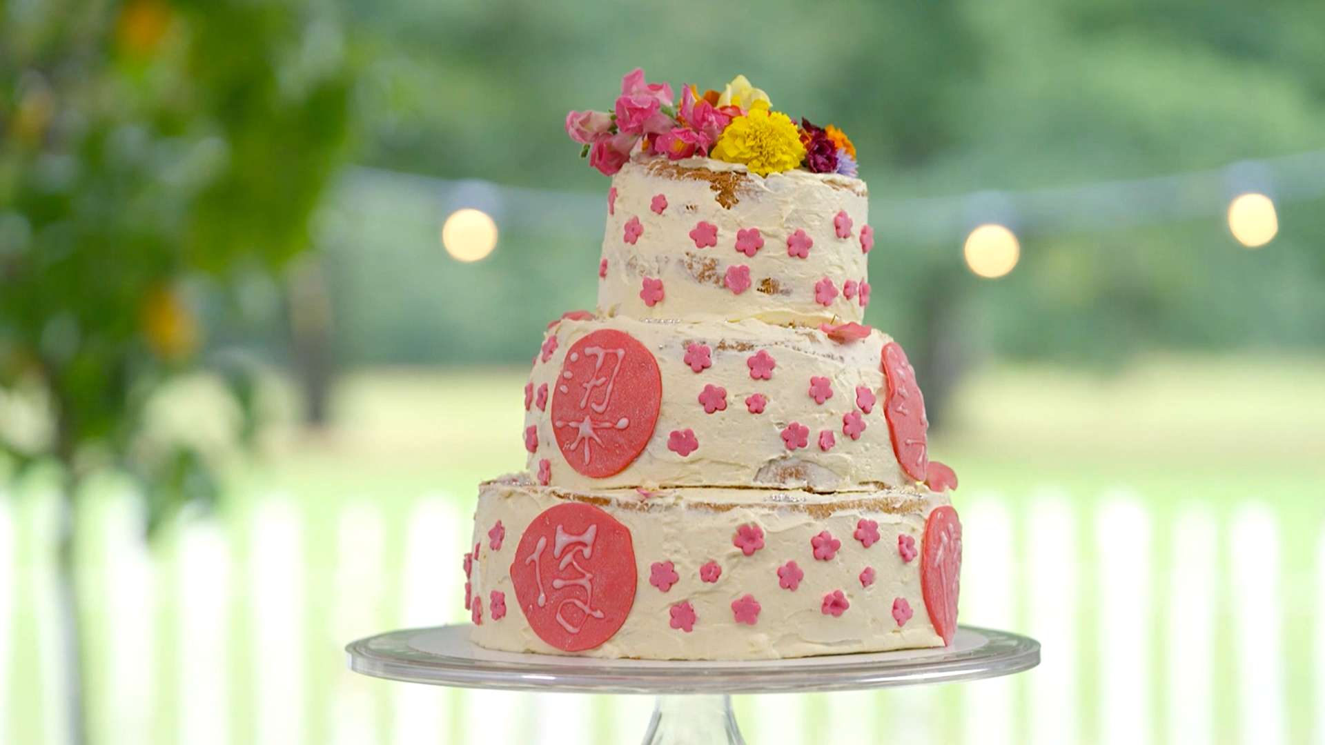 - Decoreer de taart met eetbare bloemen.
