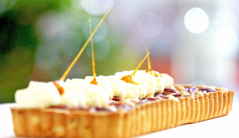 - Decoreer de afgekoelde taart met de vanillemousse en de extra hazelnoten.