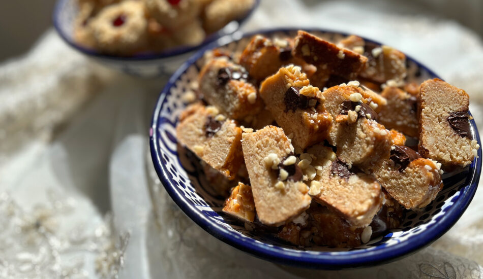 - Snijd dan de koekjes met een scherp mes in. Geniet!