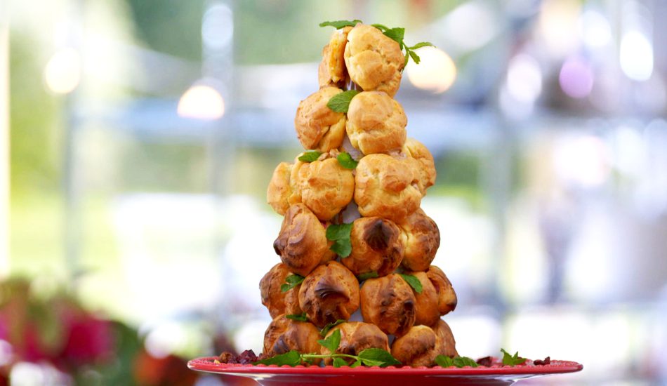 - Verwijder de kegel uit de croquembouche.