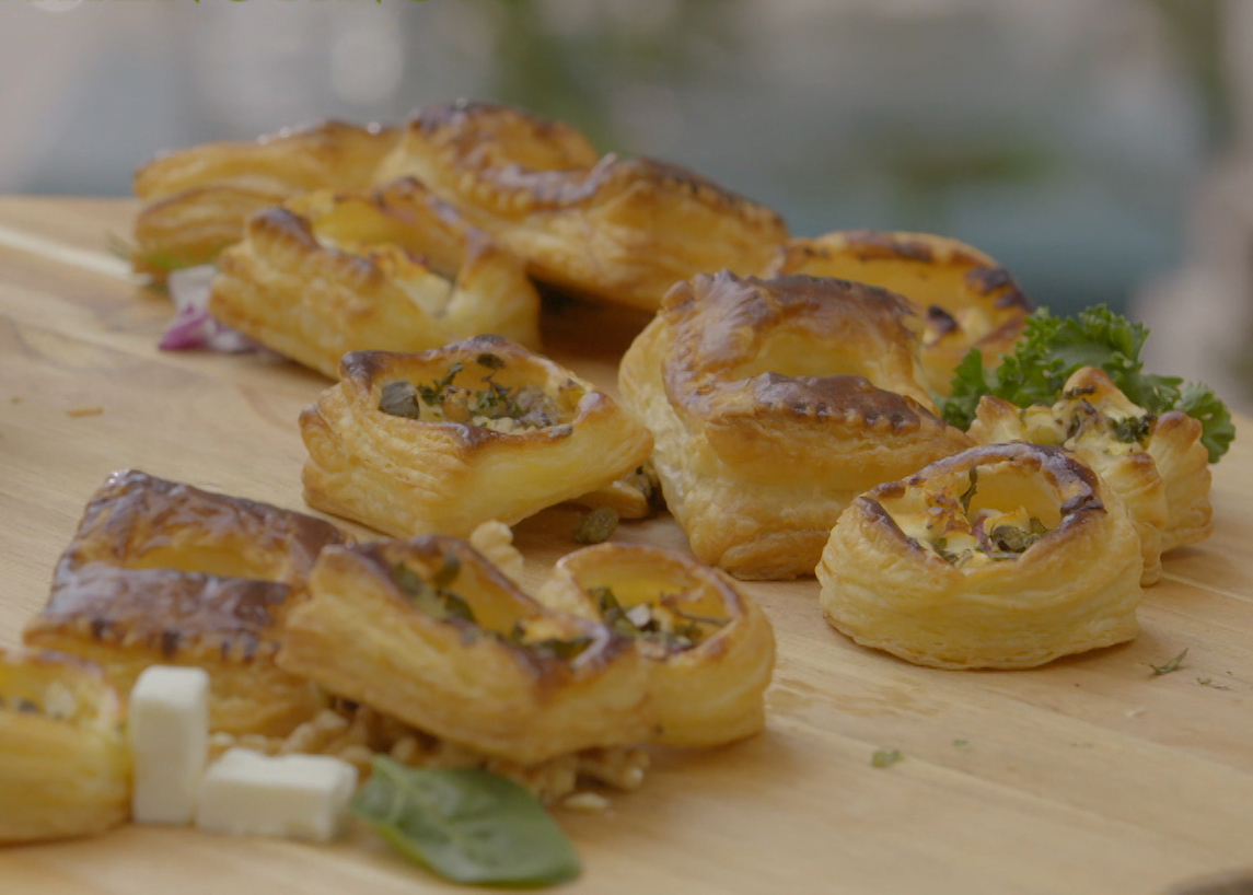 - Smeer een beetje honing over de feta-walnootbakjes.