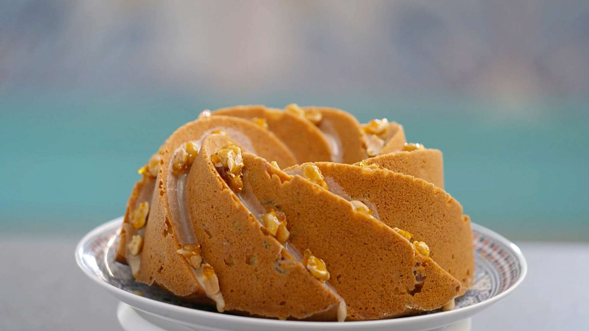 - Bak de tulband op een rooster, in het midden van de oven, in 60 – 65 minuten gaar. Controleer of de cake gaar is met een sateprikker.