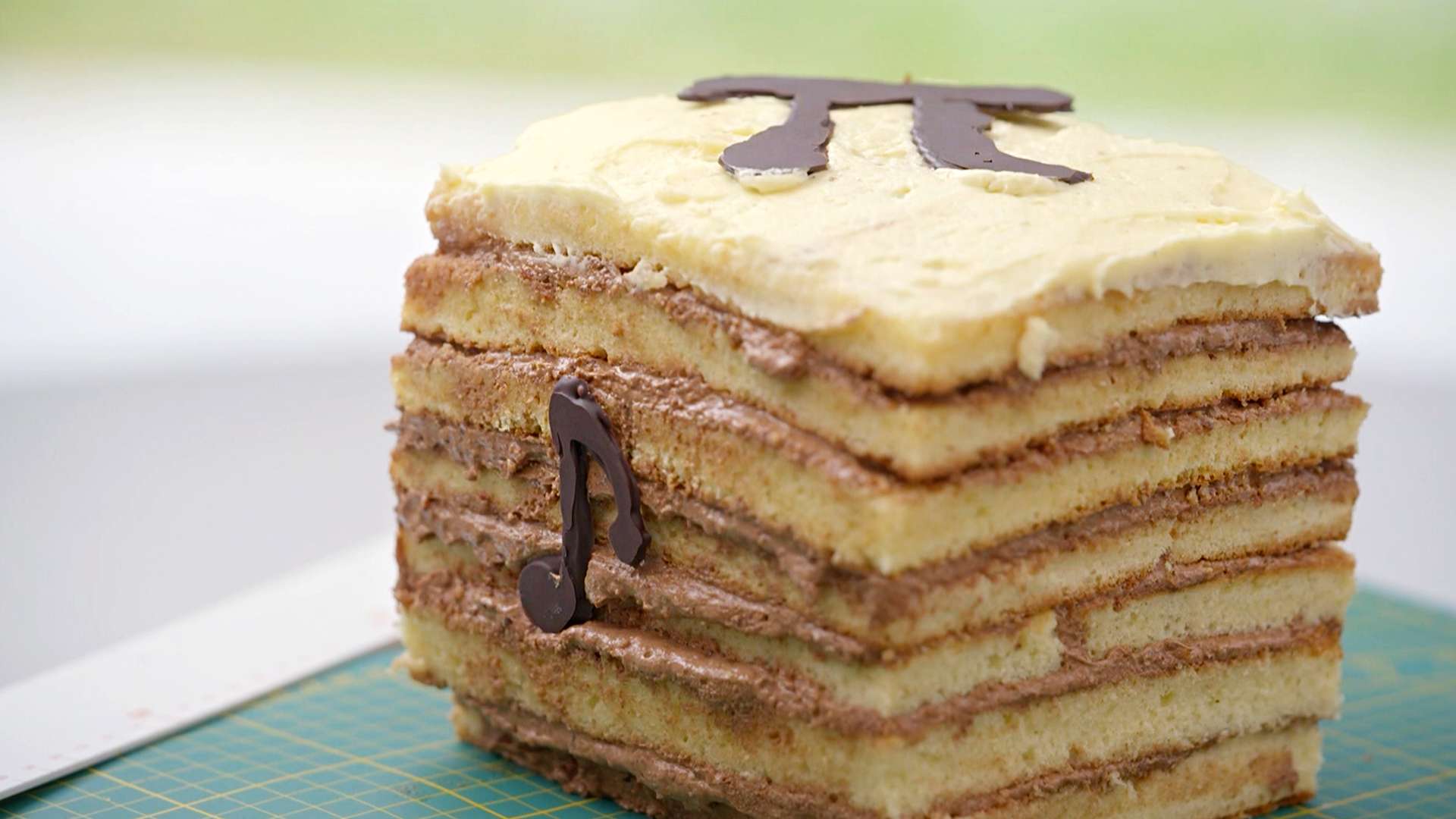- Zorg dat je taart een kubus wordt van ongeveer 15 centimeter hoog.