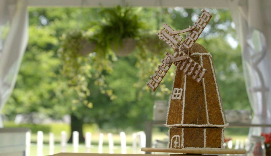 - Zet de molen in elkaar met behulp van isomalt. Werk de naden af met de glazuur af.