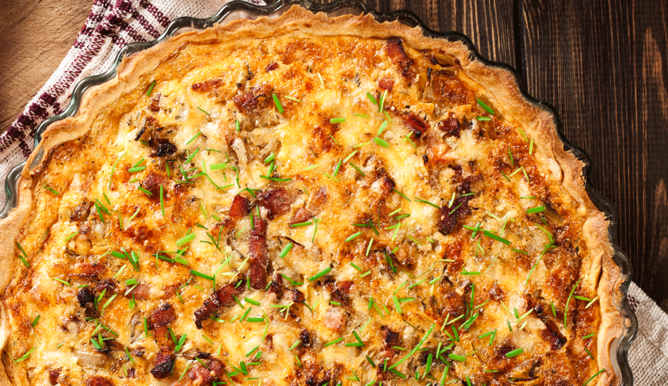 Deze quiche maak je met gegrilde groenten. Voor een vegetarische variant laat je de spekjes gewoon weg!
