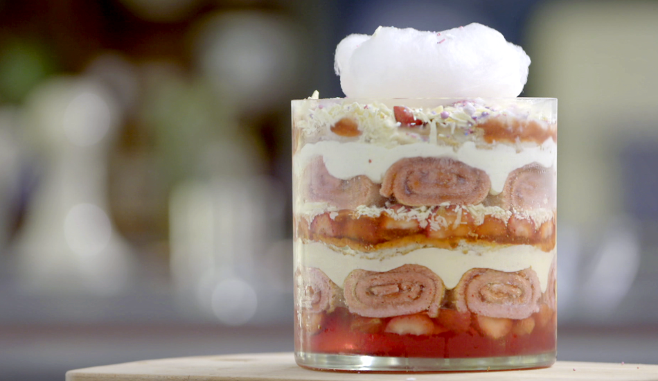 - Zet een trifleschaal met rechte zijkanten klaar.