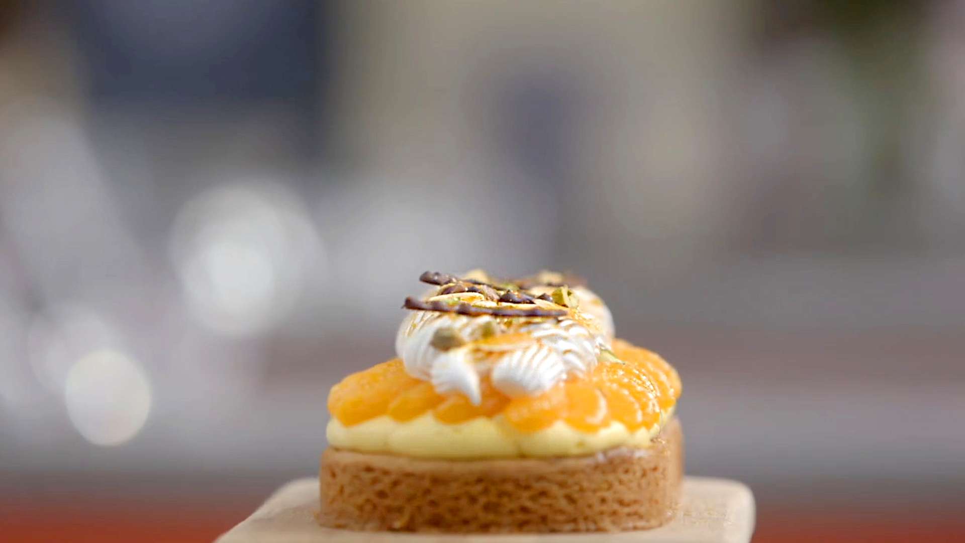Voor de liefhebbers van een goede slof: deze oranjeslof is het bakken waard. Een combinatie van pistachespijs, mandarijntjes crème en Zwitserse meringue. Zo maak je ‘m!