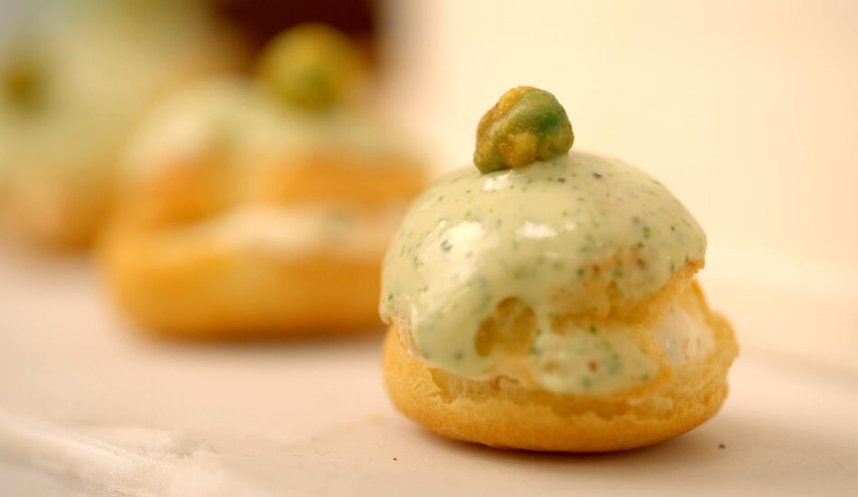 - Vul de andere helft van de soesjes met de geitenkaasmousse.