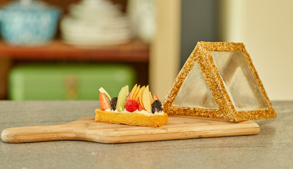 - Maak het tentje en gebruik het restant van de isomalt om de zijkanten aan elkaar te lijmen.