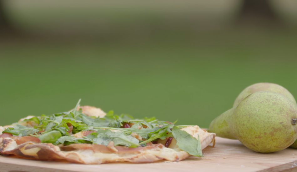 Deze flammkuchen is een combinatie van smaken om u tegen te zeggen! Zoet, zout: alle facetten komen aan bod.