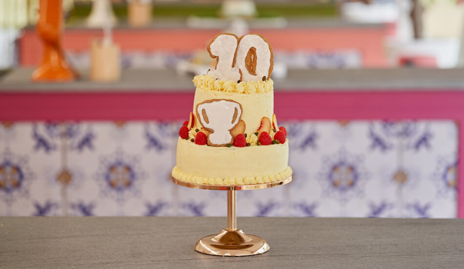 Een frisse, zoete taart die prachtig van kleur is. De koekjes met beure noisette maken de taart af. Versier ze met royal icing. Super lekker!