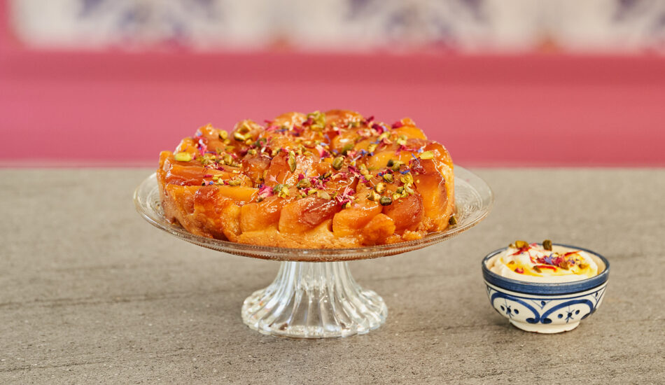 In en op deze taart vind je saffraan, een specerij uit Iran. Het toevoegen van veel appels maakt dit tot een heerlijke tarte tatin.