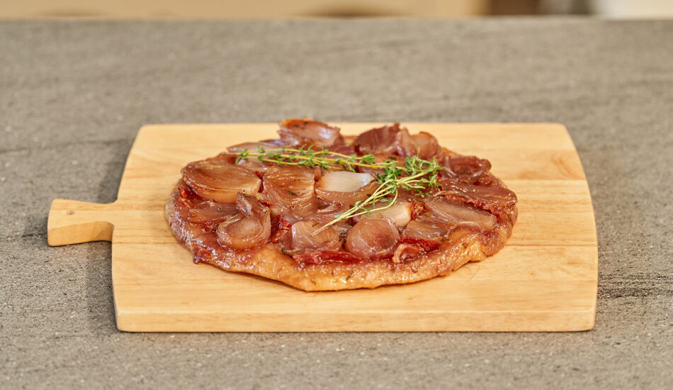 Een Franse klassieker de tarte tatin. Deze versie is hartig, met sjalotjes en spek. Een tip van Janny: maak reepjes spek, dan worden ze nóg krokanter.