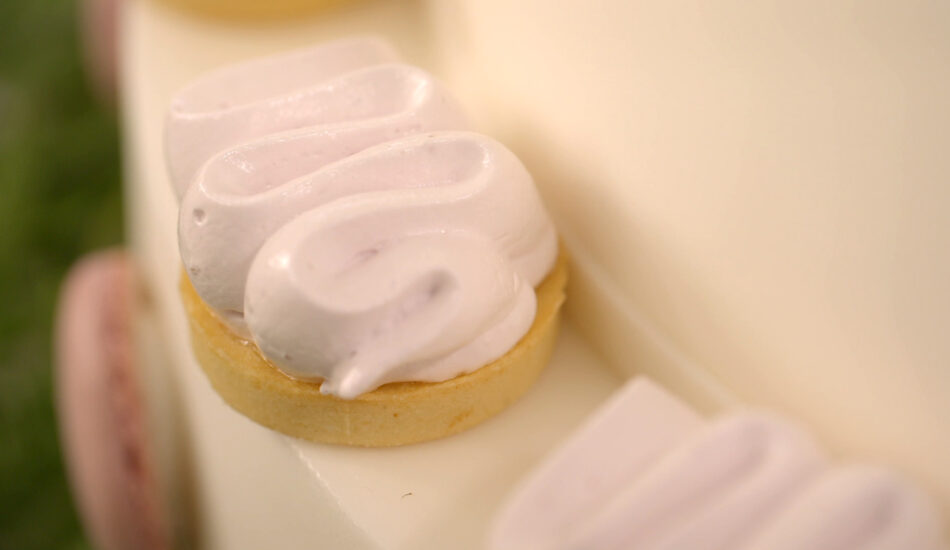 - Haal de tartelettes uit de vriezer en vul ze nu met bosvruchtenmeringue.