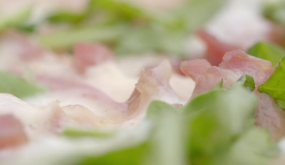 - Snijd het spek in kleine reepjes.