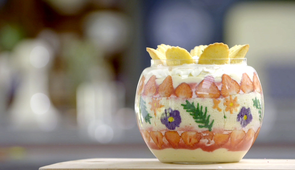 - Wentel deze door de suiker en decoreer de trifle ermee.