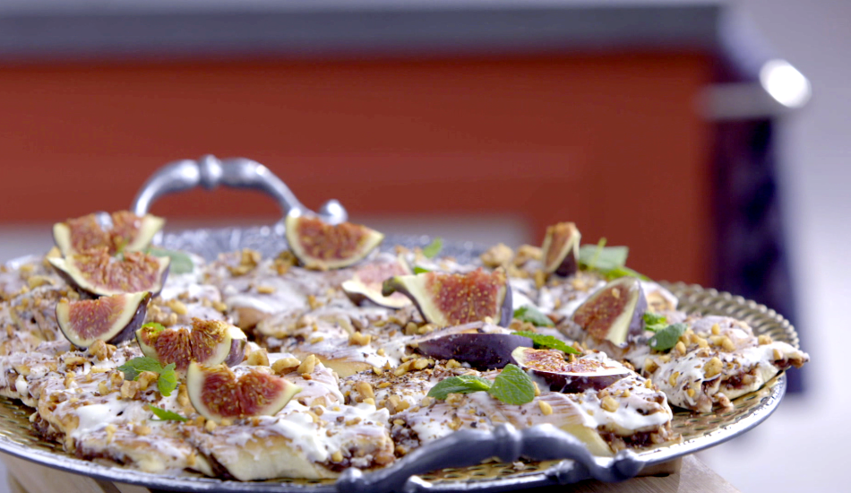 • Bestrijk een laag deeg met de vijgen-walnoten compote.